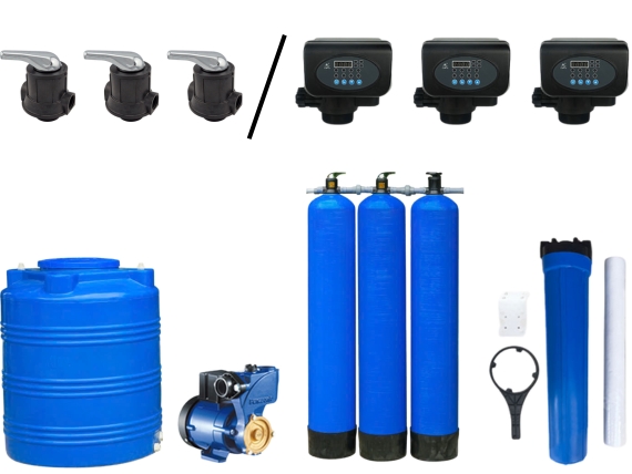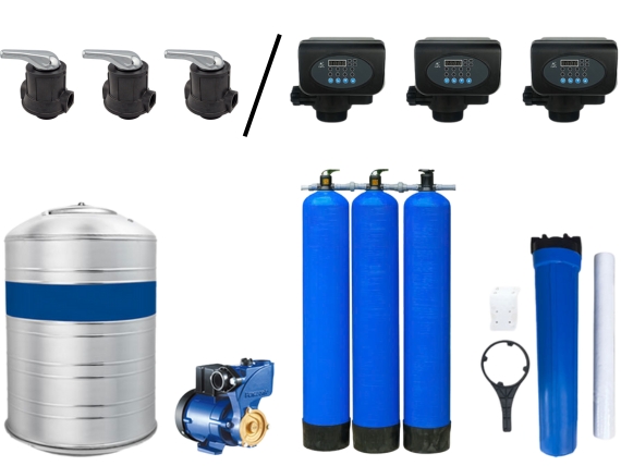 Vật liệu lọc nước gồm: Cát thạch anh, Cát Mangan Greensand Plus, Than hoạt tính gáo dừa Việt Nam