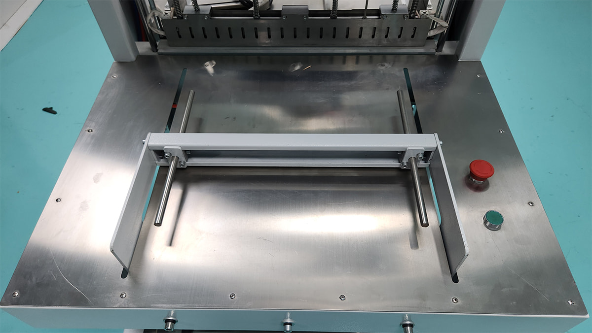 Hệ thống bàn làm việc của máy được thiết kế để có thể điều chỉnh linh hoạt, giúp người dùng dễ dàng thay đổi cài đặt để phù hợp với từng loại sản phẩm. Chiều cao bàn đặt sản phẩm 80+5 cm cũng là một thiết kế công thái học, giúp người vận hành làm việc thoải mái và hiệu quả.
